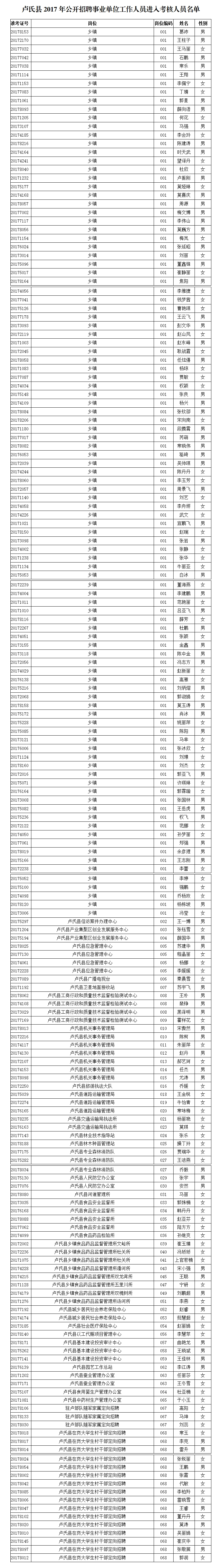 卢氏县2017年公开招聘事业单位工作人员进入考核人员名单
