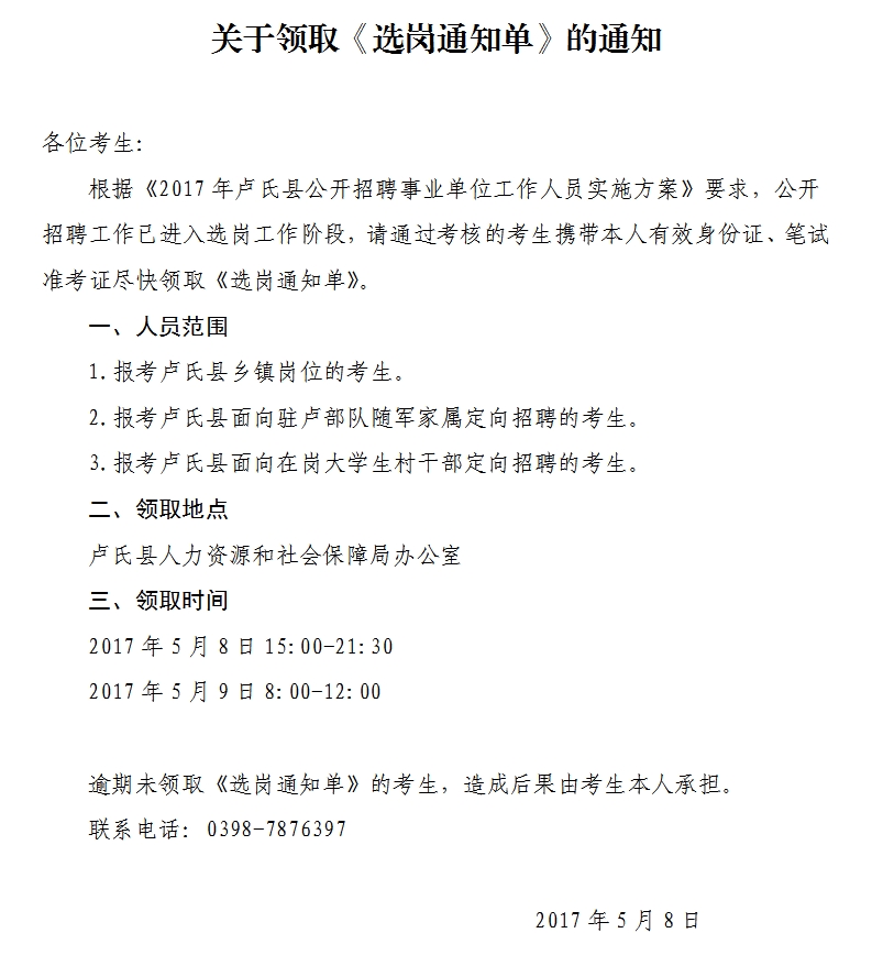 上一篇:2017年卢氏县公开招聘事业单位工作人员递补考核人员公示