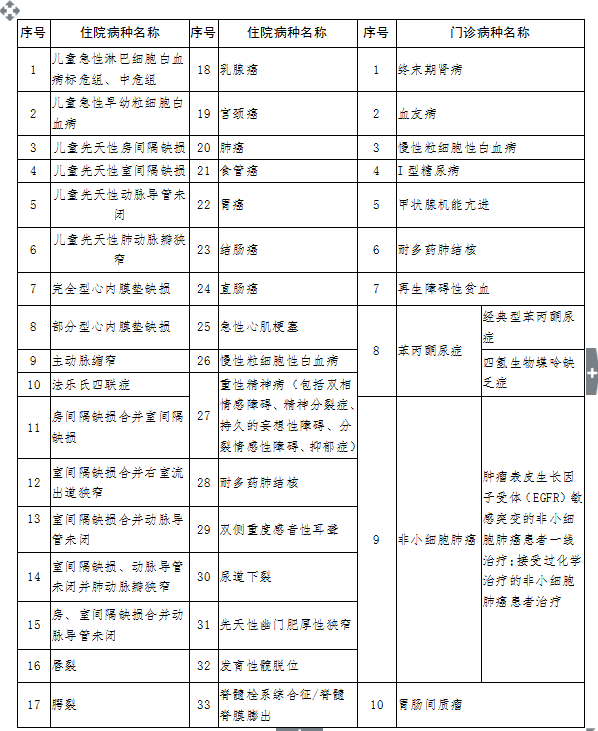 答:城乡居民如果患以下43种重特大疾病(其中住院病种33种、门诊病种10种),可以按规定享受我省城乡居民重特大疾病医疗保障待遇,即在指定的医疗机构就医,按限价标准报销,不设起付线;县级、市级、省级医疗机构住院的报销比例分别是80%、70%、65%;门诊腹膜透析的报销比例是85%,其他门诊病种报销比例是80%。